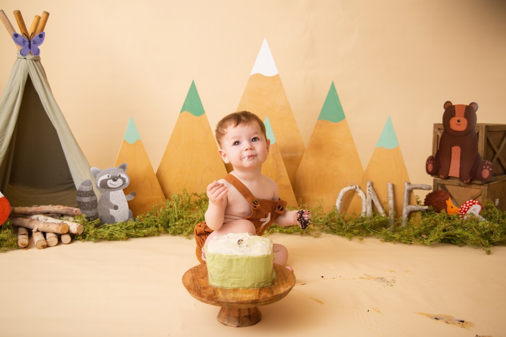 There’s something absolutely magical about a baby’s first birthday — it’s the perfect mix of proud parent tears, giggles, and a whole lot of frosting! This little one celebrated turning one with the most charming “camping in the woods” cake smash session, and y’all… it was as sweet as it gets!