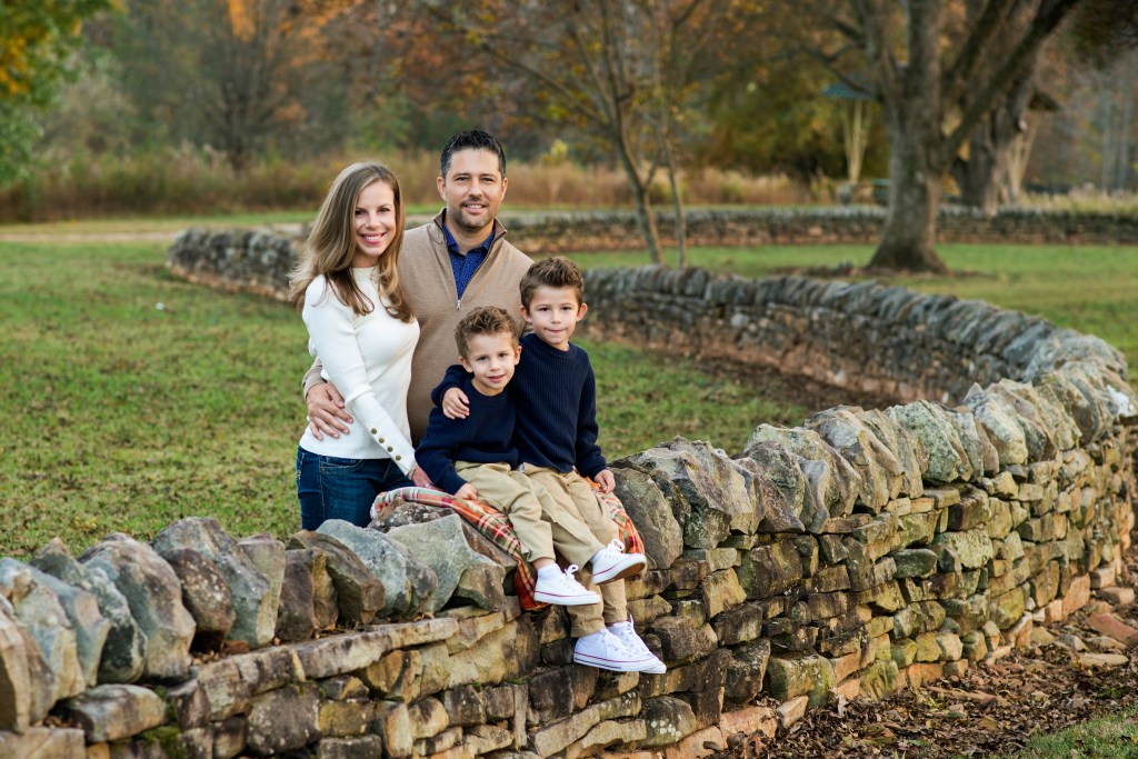 We started the afternoon curled up on a blanket under the trees, capturing those gentle, connected moments between Mama and her boys — the kind of moments that feel soft and simple, but mean everything. From there, we explored the stone walls and rustic barns that give this location so much charm, letting the boys climb, lean in close, and flash those mischievous little smiles that every parent knows so well.