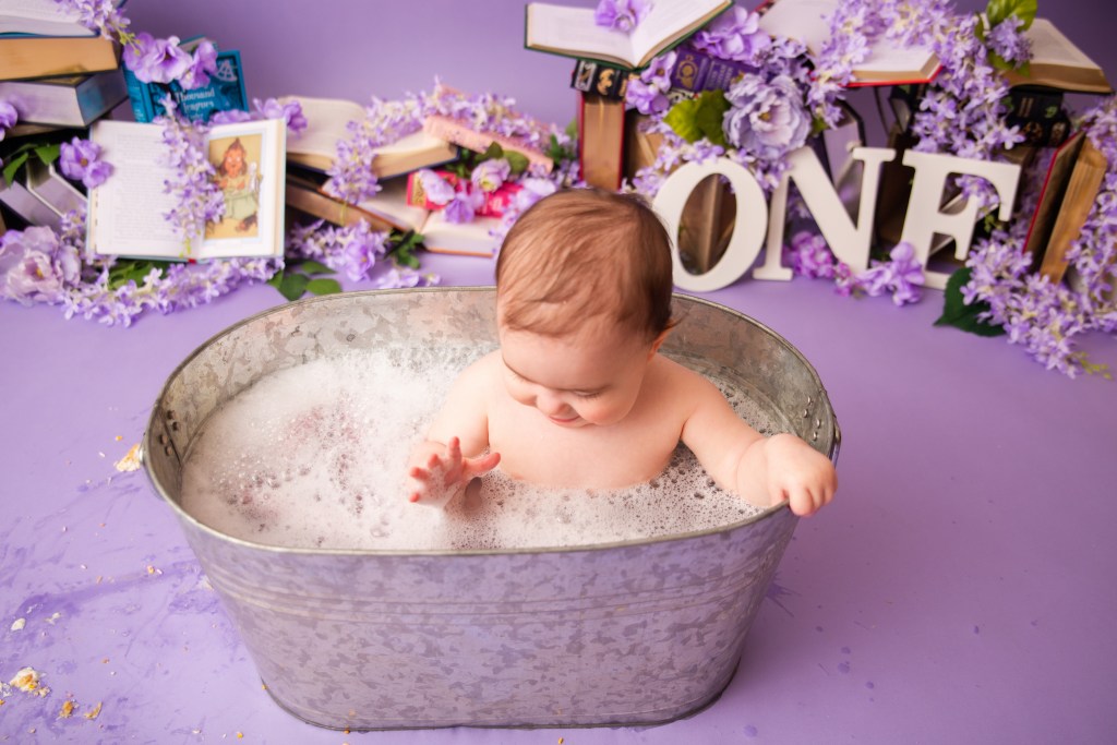 want to take your session to the next cuteness level? after your little one has smash a cake, it’s time to clean them up in a bubble bath! This session also includes sibling images before the smash session!